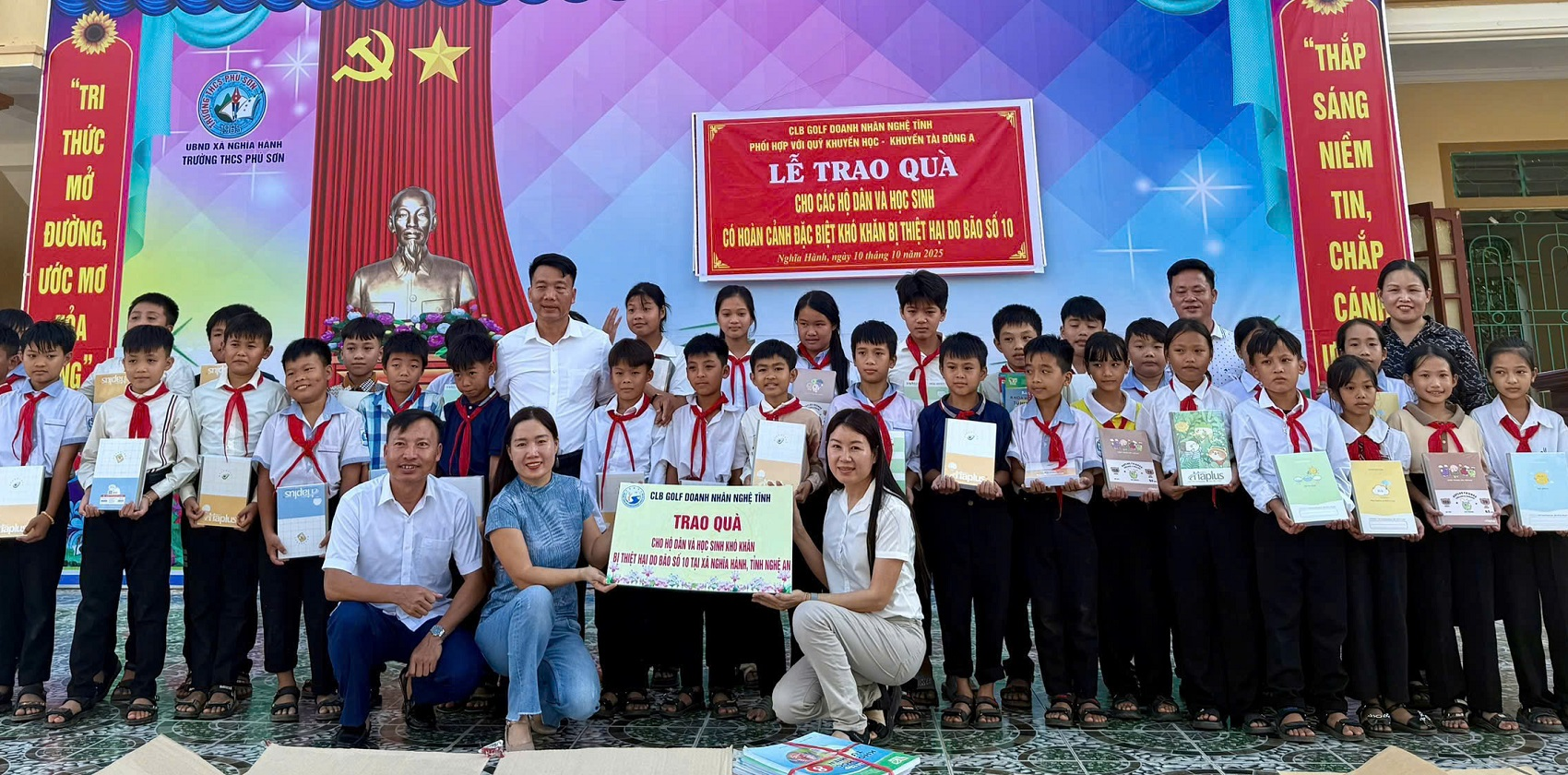 Đoàn trao quà tặng hộ dân, học sinh tại Nghĩa Hành, Nghệ An.