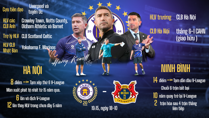 HLV Harry Kewell sẽ trình làng CĐV CLB Hà Nội và người hâm mộ V-League vào tối nay (18-10). Đồ họa: VỆ LOAN