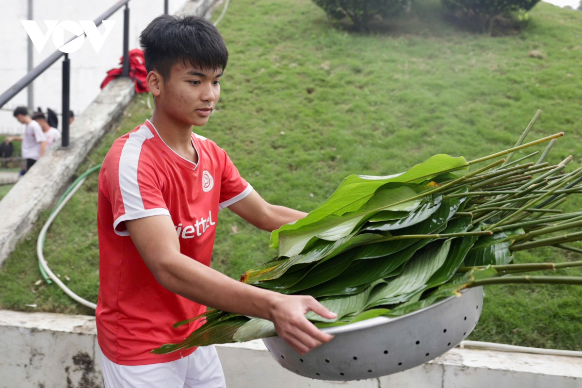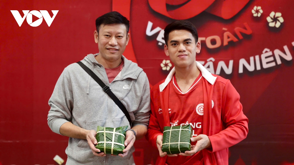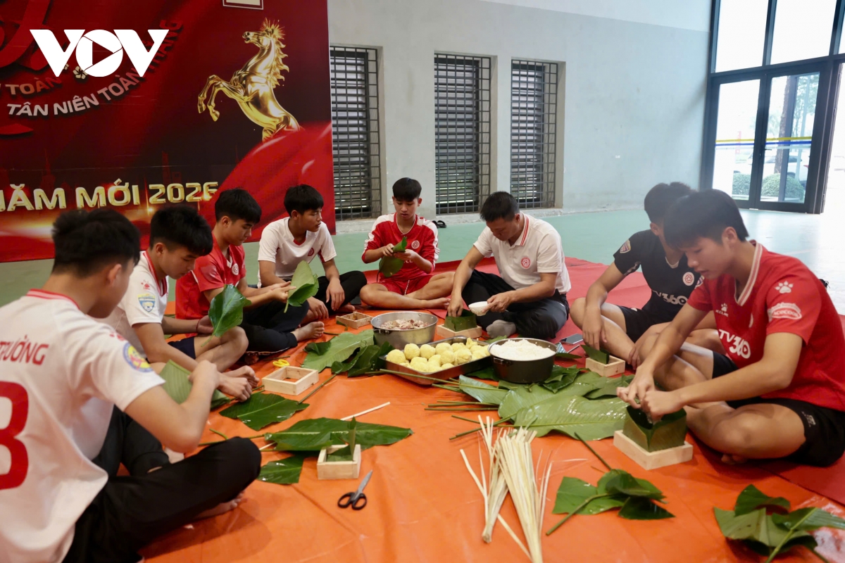 “Việc cùng với tất cả mọi người tại đội bóng ngồi rửa lá, vò đỗ và tự tay gói từng chiếc bánh giúp Khang cảm thấy tâm trí thư thái hơn rất nhiều. Trong lòng mình cũng rộn ràng hơn vì biết Tết đã cận kề”, tiền vệ Khuất Văn Khang chia sẻ.