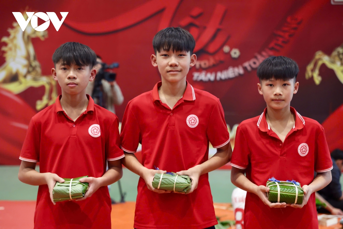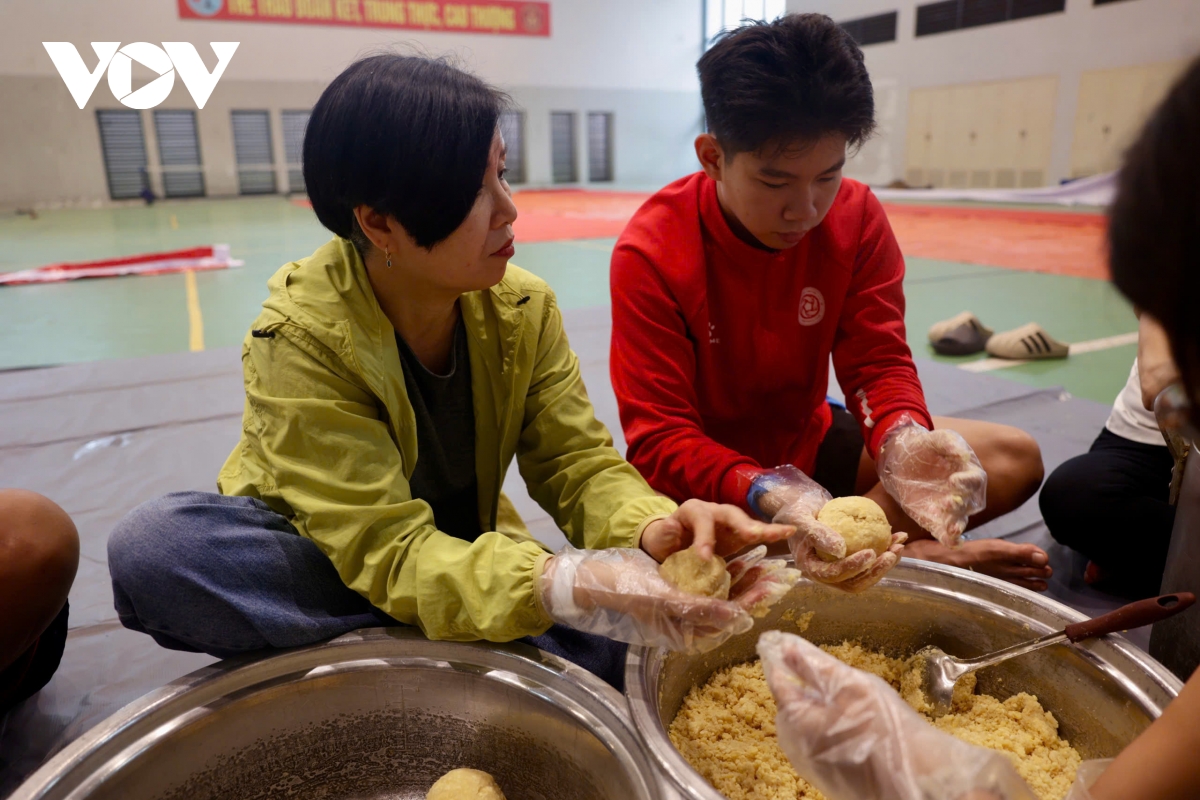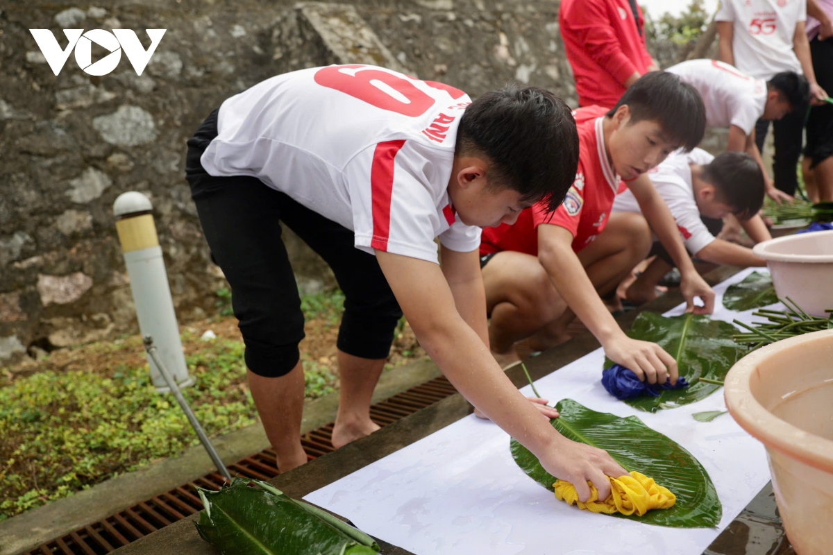 Từ các cầu thủ trẻ, đến những cầu thủ chuyên nghiệp hay các HLV, tất cả đều tỏ ra hứng thú, cố gắng tỉ mỉ để tạo ra những chiến bánh chưng vuông vắn đẹp mắt.
