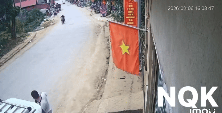 Tiếp đó, bé trai ngồi bị ngã xuống đường, còn bé trai cầm lái tiếp tục điều khiển chiếc xe lạng lách trên đường cho đến khi chiếc xe ngã xuống. Toàn bộ sự việc được camera an ninh nhà dân ghi lại.