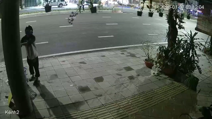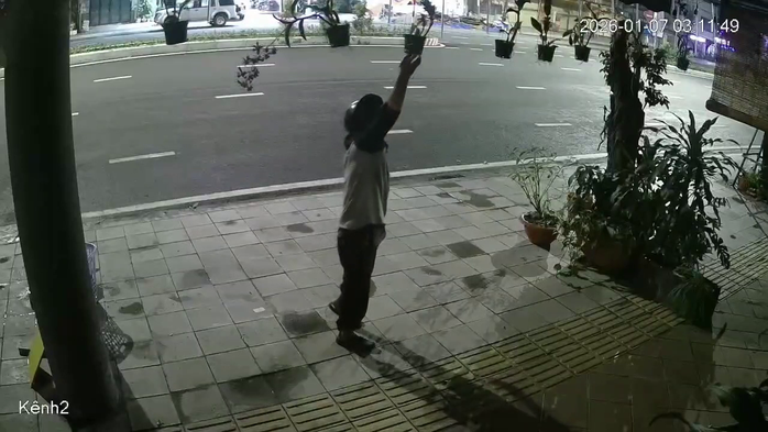 Theo đó, vào lúc 3 giờ 10 phút ngày 7-1, một nam thanh niên đội nón bảo hiểm, đeo khẩu trang tiến đến phía trước cửa quán để cuỗm một chậu lan kiểng đang treo cao. Sau đó, nam thanh niên bỏ chậu lan kiểng vào cái sọt nhựa mang theo sẵn. Những chậu lan khác do treo cao hơn nên "đạo chích" này không lấy được.