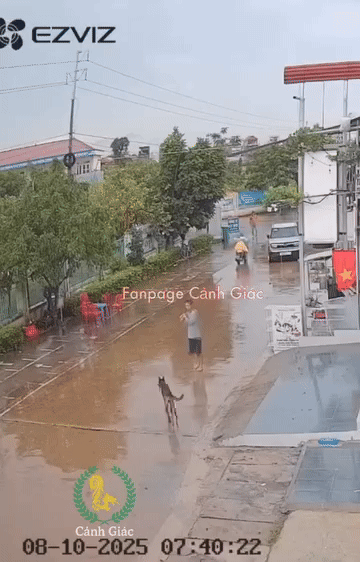 Người đàn ông xuống xe, cầm gậy đuổi con chó becgie đi thật xa, nhờ đó mà cả 3 mẹ con đều thoát nạn. Toàn bộ sự việc được camera an ninh ghi lại.