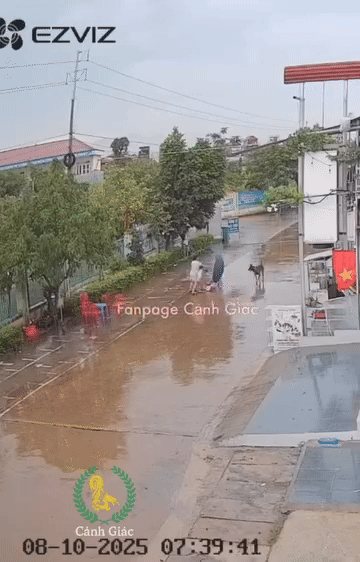 Tuy nhiên, khi vừa bước ra đường, 3 mẹ con bất ngờ gặp một con chó becgie lớn. Ngay lập tức, con chó tỏ ra hung hăng và xông đến định tấn công 3 mẹ con. Người mẹ liền dùng chiếc ô che chắn, nhờ đó mà con chó bị khuất tầm mắt, chưa thể tấn công 3 mẹ con. Dẫu vậy, con chó vẫn không bỏ cuộc, cố gắng tìm cách để tấn công họ.