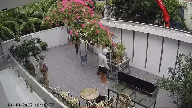 Phía chủ nhà khi xem lại camera, khoảnh khắc cây hoa giấy "siêu to khổng lồ" mà họ dày công chăm sóc bấy lâu, nay gãy làm đôi trong tích tắc, có lẽ sẽ khiến họ tiếc hùi hụi.