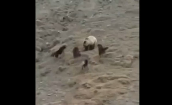 Trận chiến xảy ra khi một con gấu hoang xâm nhập vào lãnh thổ mà đàn chó ngao đang bảo vệ. Dù đối mặt với một đối thủ vượt trội về kích thước và sức mạnh, những chú chó ngao không hề nao núng. Nhờ lợi thế số lượng và chiến thuật tấn công luân phiên – một kiểu “xa luân chiến” đặc trưng – chúng đã liên tục dồn ép khiến con gấu buộc phải rút lui.