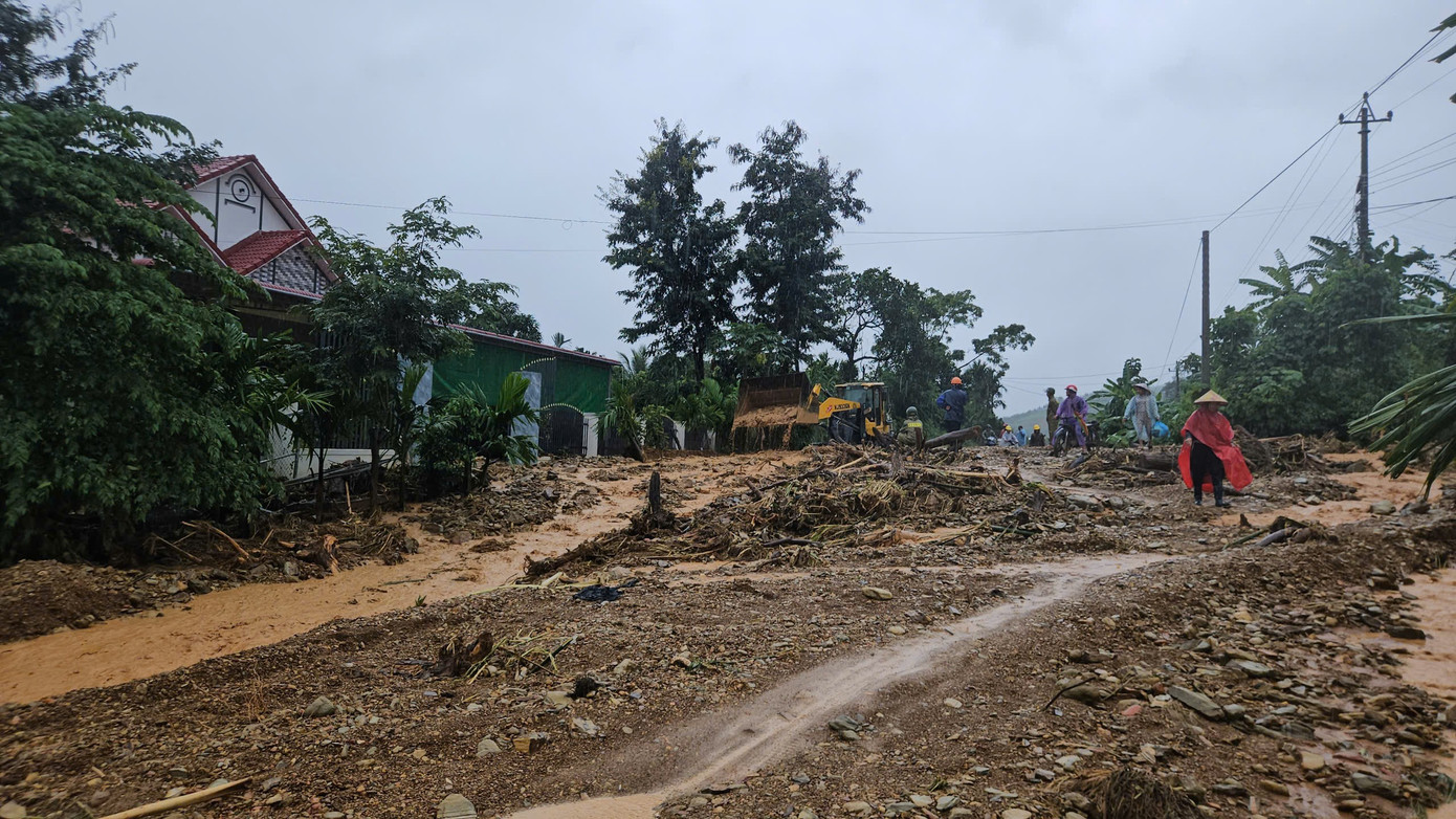 Hiện lực lượng chức năng đang huy động máy móc san gạt, mới chỉ mở được lối nhỏ cho xe máy đi qua; ô tô và xe tải vẫn chưa thể lưu thông. Chính quyền xã bố trí lực lượng túc trực và cảnh báo người dân không vào khu vực nguy hiểm.