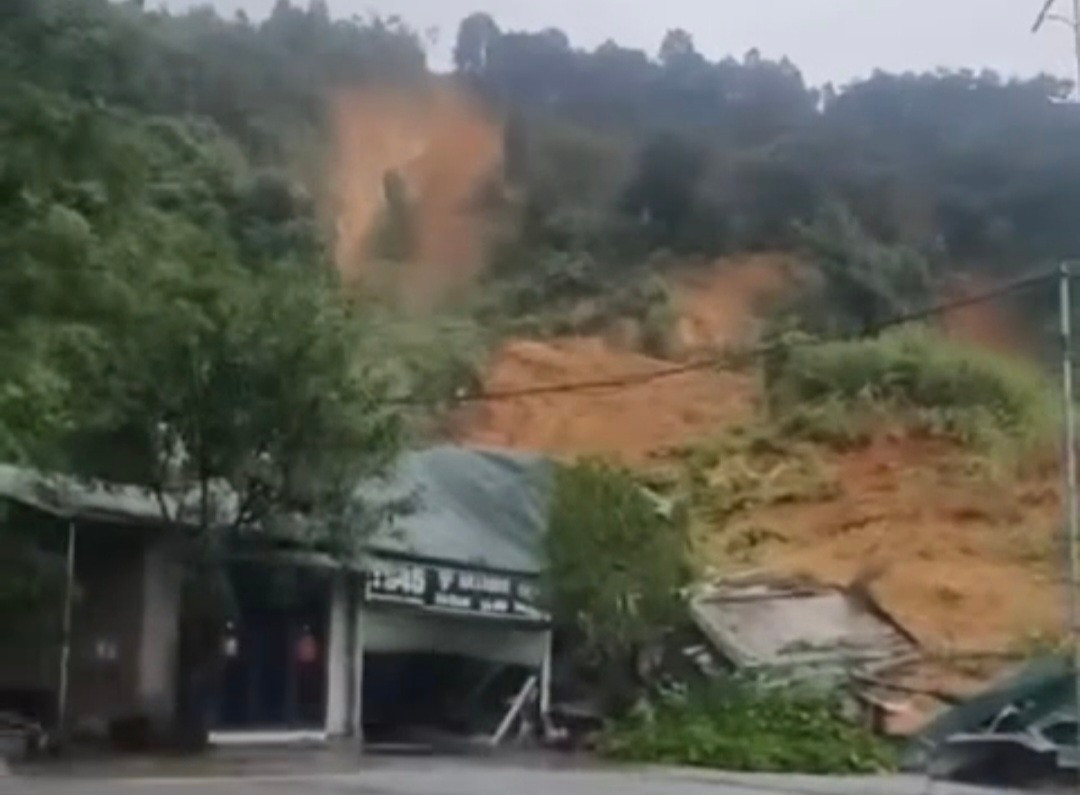 Sạt lở khiến 3 ngôi nhà bị sập. Ảnh cắt từ video.