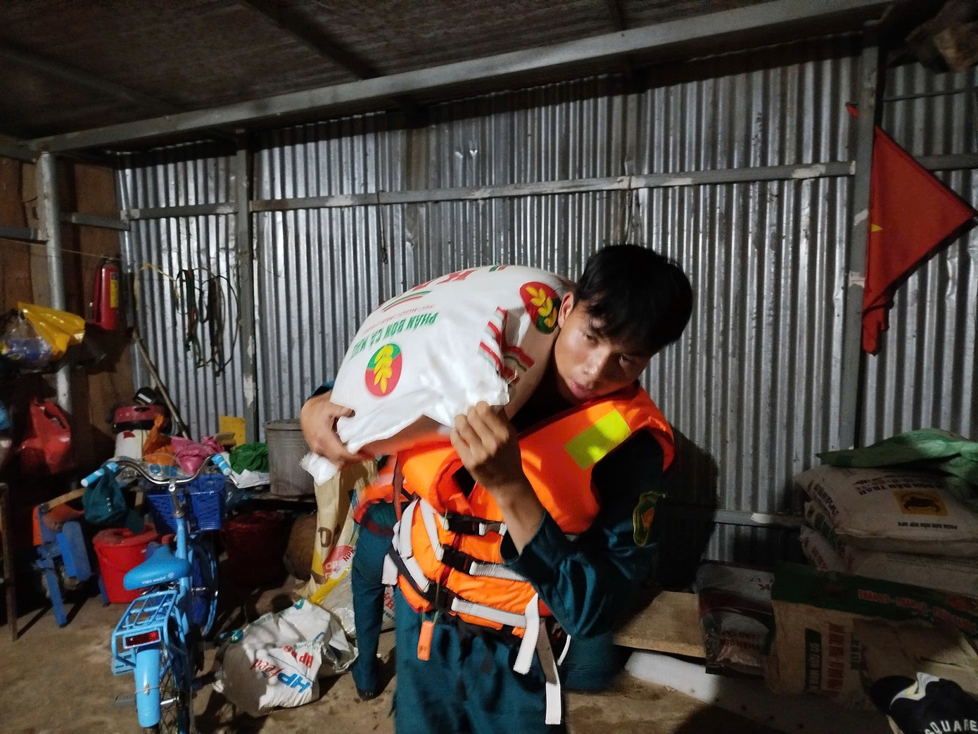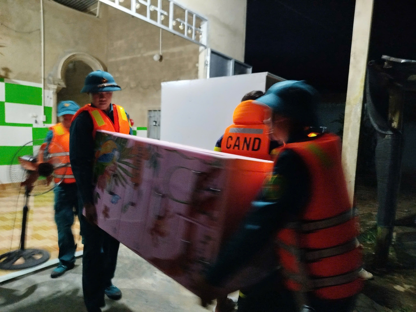 Ngay trong đêm, các lực lượng di dời 50 hộ dân và tài sản của 56 hộ dân lên khu vực an toàn.