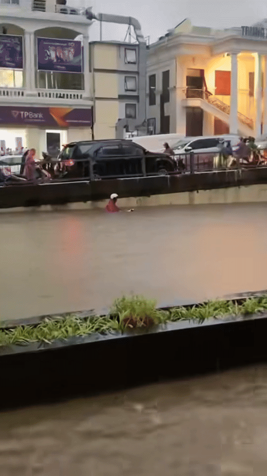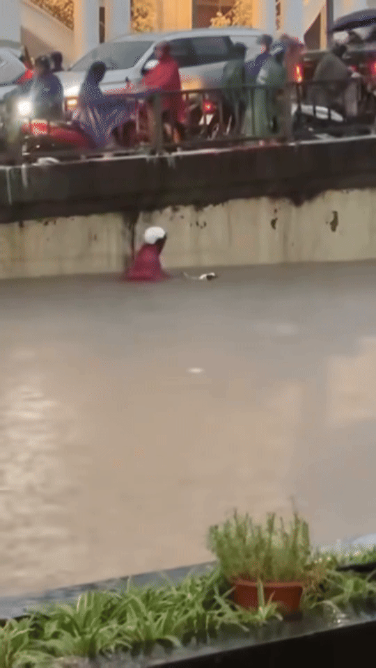Hành động của thanh niên này khiến ai nấy đều lo lắng, bởi việc di chuyển trên con đường ngập nước nặng như vậy tiềm ẩn rất nhiều rủi ro.