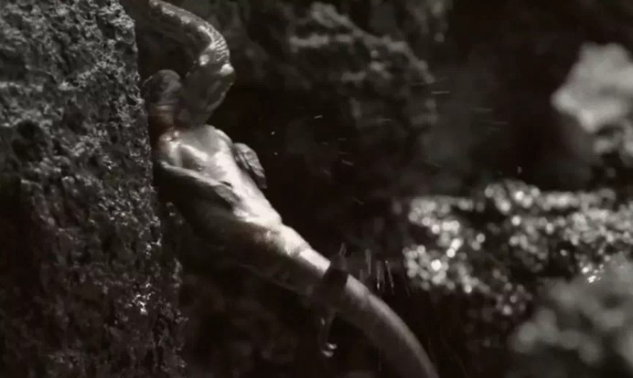 Một con rắn racer (thuộc họ rắn Colubridae, không có nọc độc) đã kiên trì truy đuổi và khống chế thành công một con cự đà biển Amblyrhynchus cristatus non trẻ, con mồi ưa thích của loài rắn này.