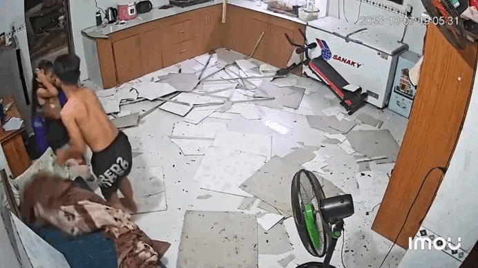 Trong khoảnh khắc hỗn loạn ấy, người anh ngay lập tức bật dậy, quay sang kiểm tra tình hình của em gái, hỏi han xem em có bị thương hay không. Nhận thấy em an toàn nhưng đang hoảng loạn, anh lập tức trấn an, bảo em leo lên lưng để cõng ra ngoài. Đáng chú ý, trước khi rời khỏi căn phòng đầy mảnh vỡ, người anh không quên rút ổ cắm điện của chiếc quạt đang hoạt động.