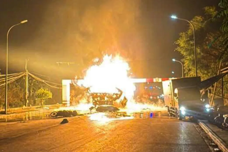 Khoảng 19 giờ tối 28-10, xe bồn chở khí hóa lỏng chạy trên đường vào khu vực Khu công nghiệp Phố Nối A (tỉnh Hưng Yên) thì bị sự cố, phát nổ rồi bốc cháy.