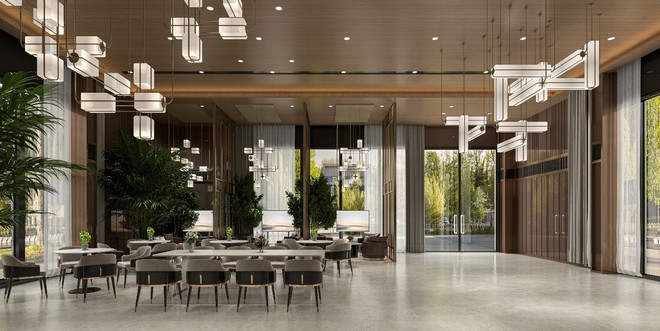 Không chỉ gây ấn tượng ở thiết kế kiến trúc, không gian bên trong của Clubhouse phô diễn vẻ đẹp tinh tế với đường nét nội thất toát lên khí chất hiện đại và sang trọng.