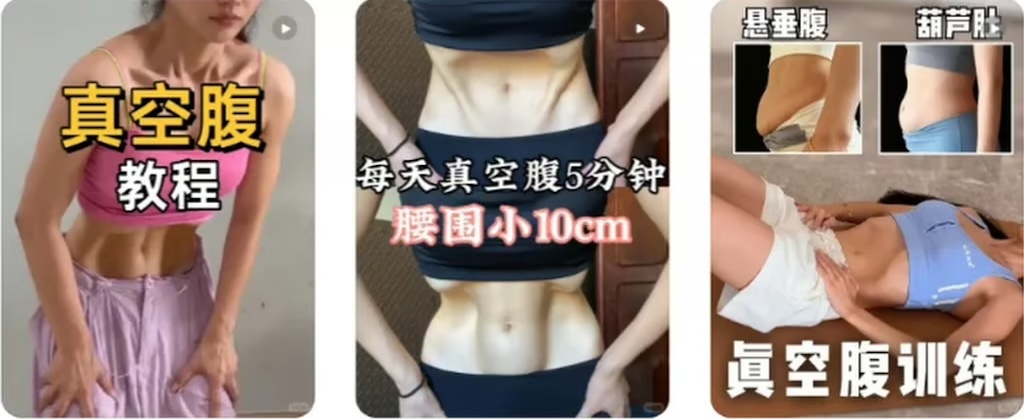 Những hướng dẫn bằng hình ảnh, video trực tuyến cho người xem cách thực hiện kỹ thuật "hóp bụng chân không". Ảnh: QQ.com.