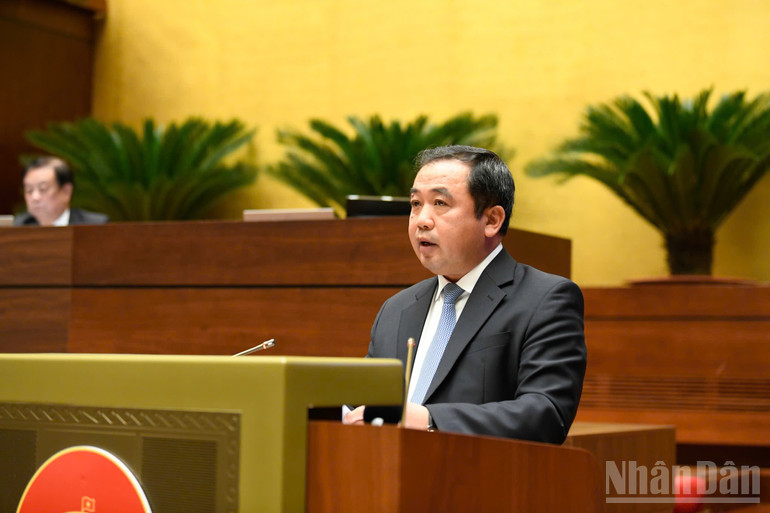 Bộ trưởng Nông nghiệp và Môi trường Trần Đức Thắng giải trình, làm rõ một số nội dung đại biểu nêu. (Ảnh: DUY LINH)