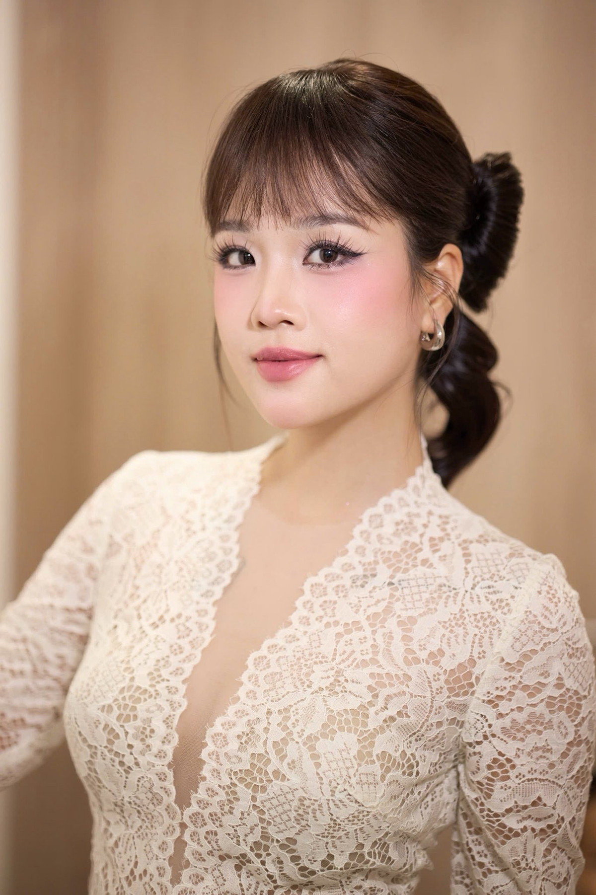 Trong bộ ảnh, Huyền My khoe trọn vẻ đẹp thanh tú, dịu dàng với lớp trang điểm tôn đường nét với làn da sáng mịn, bóng nhẹ giúp gương mặt nổi bật dưới ánh sáng ấm. Đôi mắt to, hàng mi cong vút, tạo chiều sâu và cảm giác kiêu kỳ nhưng vẫn rất cuốn hút.