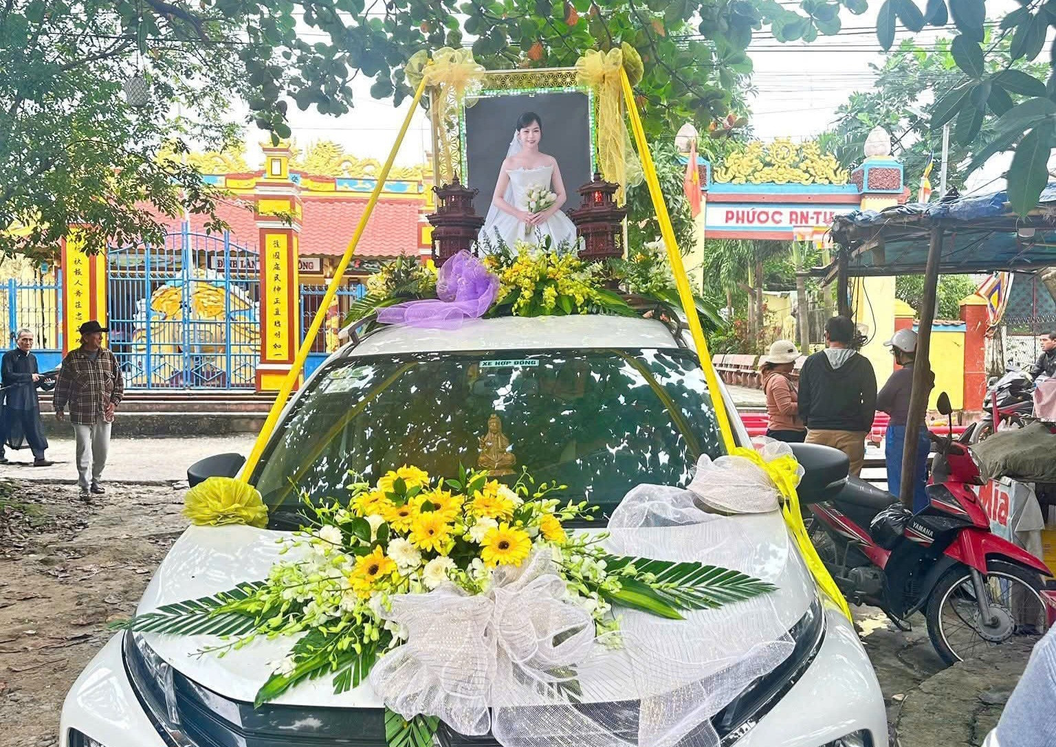 Thế nhưng, trước hôn lễ chưa đầy nửa tháng, cô dâu Hồ Thị Hiếu đột ngột qua đời. Bức ảnh cưới lẽ ra sẽ được treo trong ngày hạnh phúc nay lại được đặt trên xe hoa tang đưa cô về nơi an nghỉ cuối cùng, để lại nỗi đau không gì bù đắp cho chồng sắp cưới.