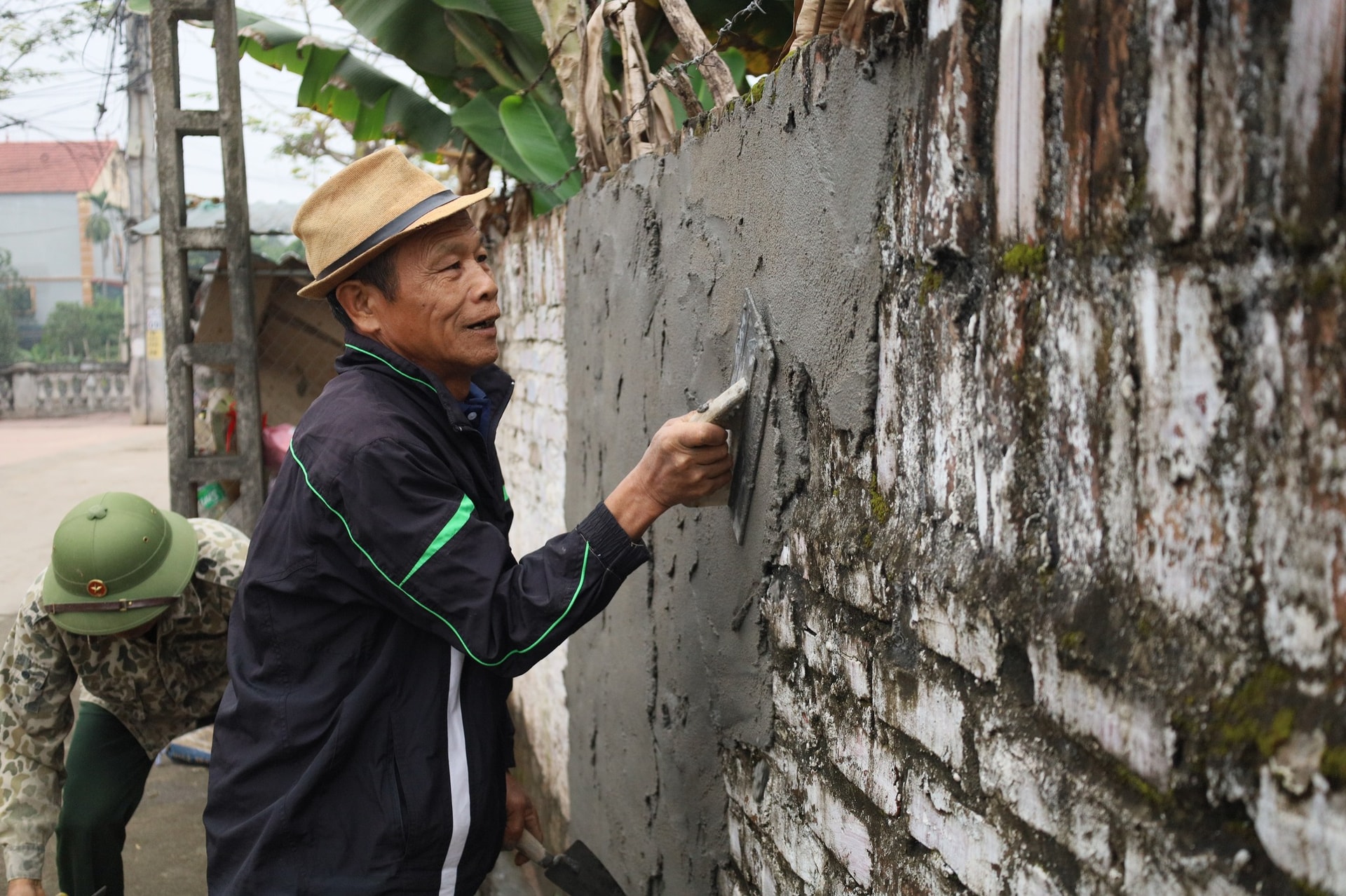 Người dân tự chỉnh trang tường bao, hiến đất mở rộng đường... chung sức xây dựng quê hương. Ảnh: Hồng Đạt