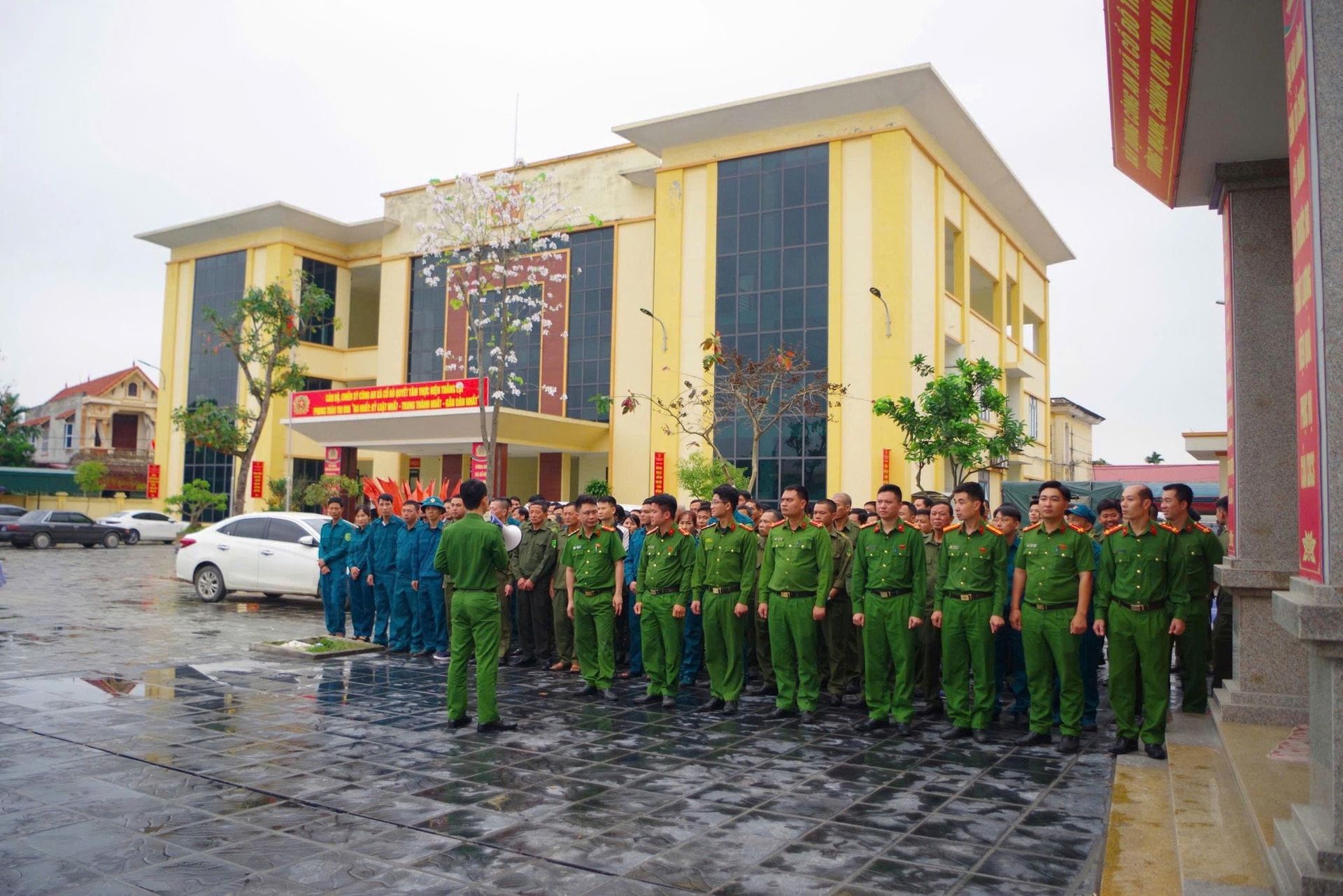 Tiểu ban an ninh trật tự cuộc bầu cử xã Cổ Đô đã triển khai phương án bảo đảm an toàn cho ngày bầu cử 15-3. Ảnh: Hồng Đạt