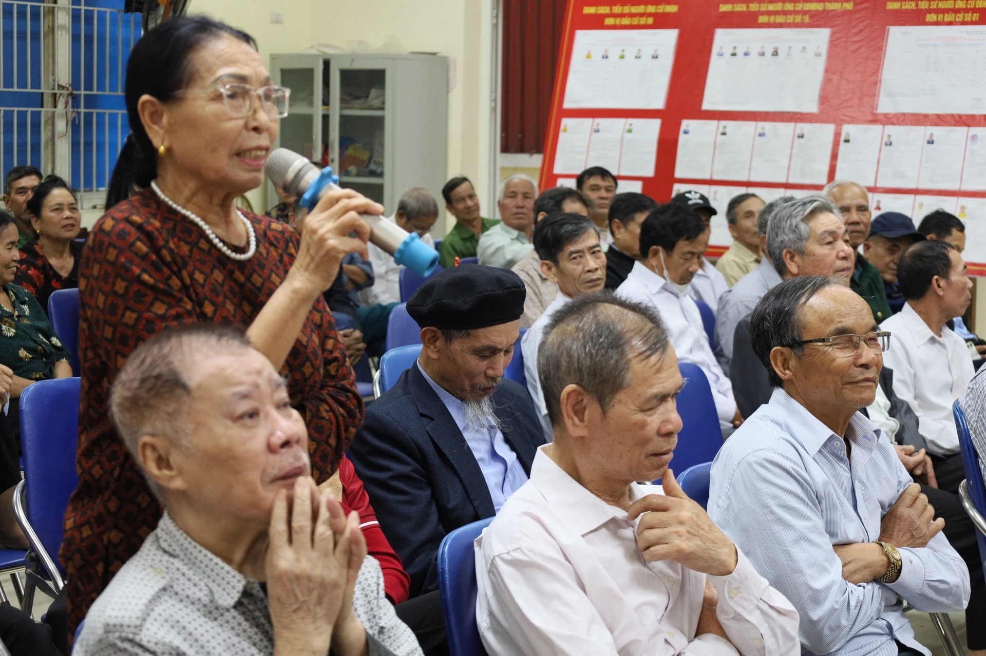 Xã Cổ Đô tổ chức mạn đàm về tiểu sử các ứng cử viên. Ảnh: Hồng Đạt