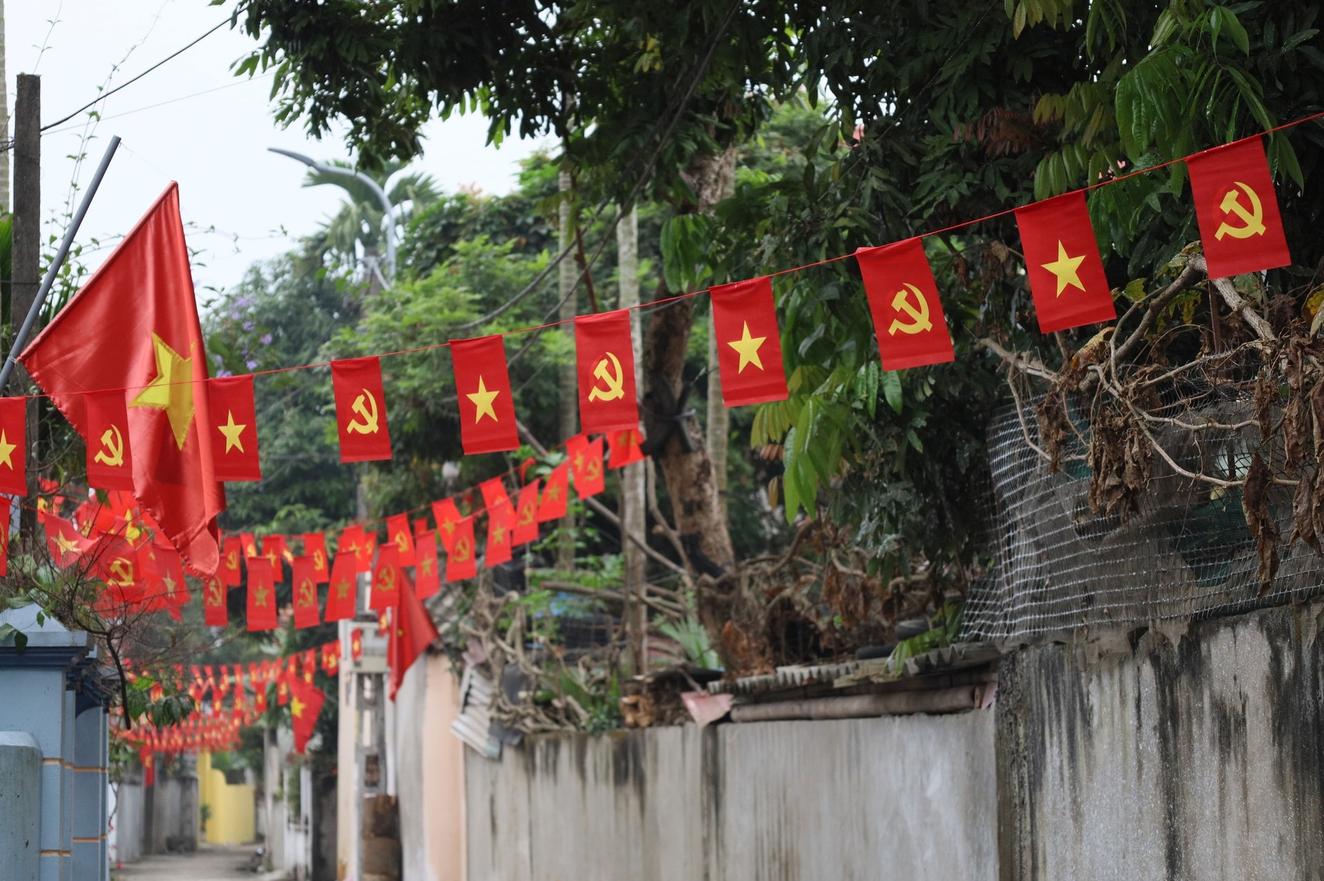 Cờ Đảng, cờ Tổ quốc được trang trí rực rỡ. Ảnh: Hồng Đạt