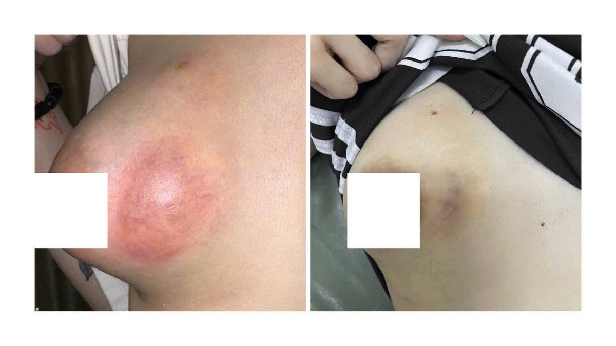 Nữ bệnh nhân 20 tuổi, làm việc tại Malaysia. Cách nhập viện 2 tháng, vì mong muốn cải thiện vóc dáng, người bệnh đã tìm đến một cơ sở thẩm mỹ để tiêm chất làm đầy vào cả hai bên vú, không rõ loại chất làm đầy đã được sử dụng tại cơ sở này. Sau thủ thuật vài ngày, thay vì đẹp hơn, vú phải bệnh nhân bắt đầu sưng, nóng, đỏ, đau, rỉ dịch xanh bất thường.