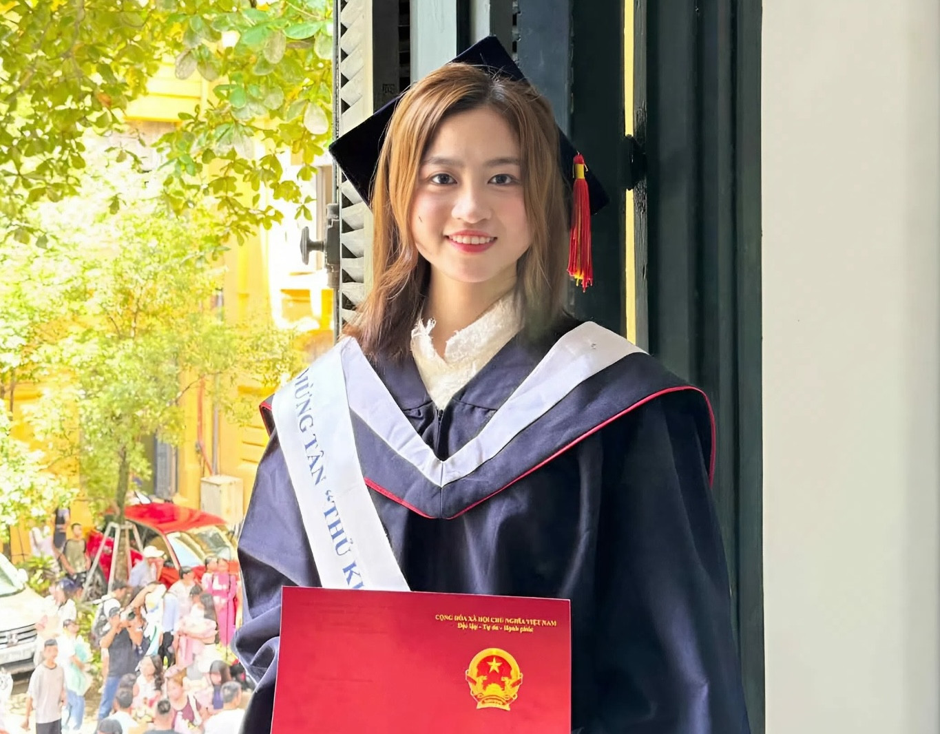 Ngân trong ngày nhận bằng tốt nghiệp. Ảnh: NVCC