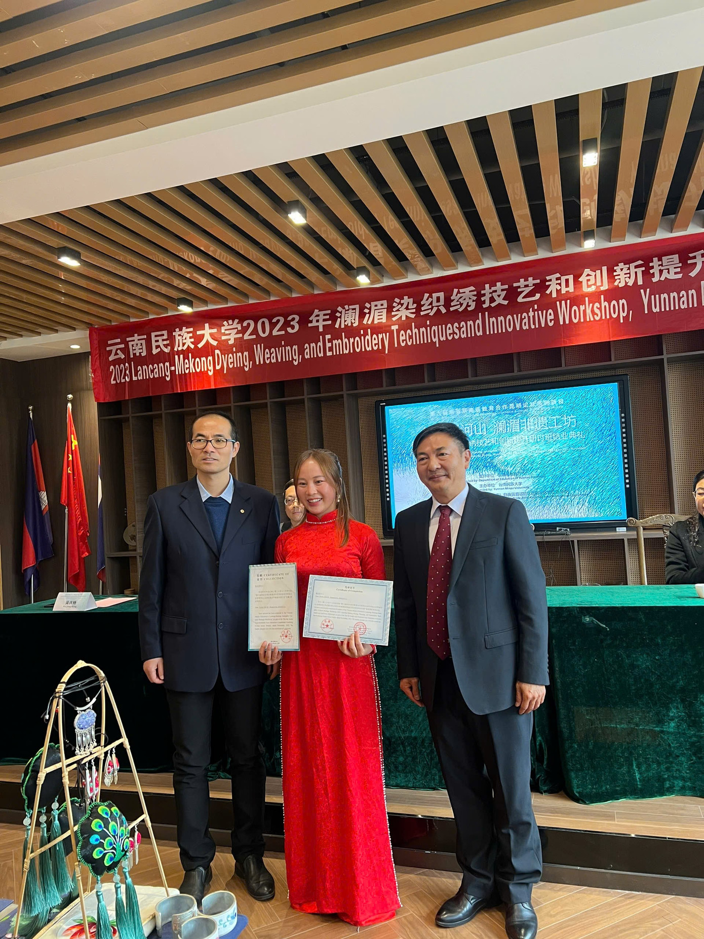 Vàng Thị Dế tham dự Diễn đàn Côn Minh về Hợp tác và Trao đổi giáo dục Nam Á và Đông Nam Á lần thứ 6, chia sẻ kinh nghiệm bảo tồn và phát triển nghề truyền thống.