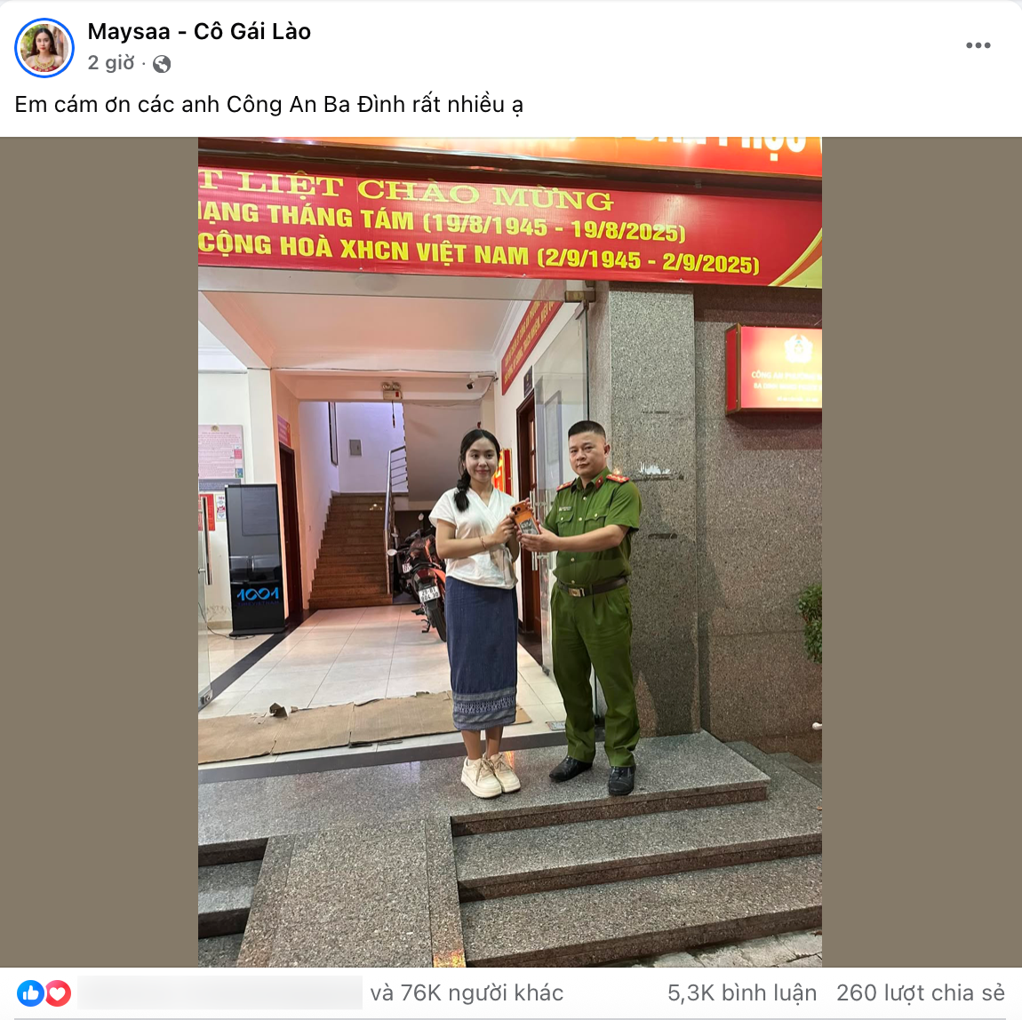 Sau khi đăng tải, bài viết của Maysaa nhanh chóng thu hút hàng chục nghìn lượt chia sẻ. Nhiều cư dân mạng khuyên cô trình báo cơ quan chức năng. Ngay trong ngày 11/10, Công an phường Ba Đình (Hà Nội) đã tiếp nhận thông tin, tiến hành xác minh và truy tìm chiếc điện thoại bị trộm.