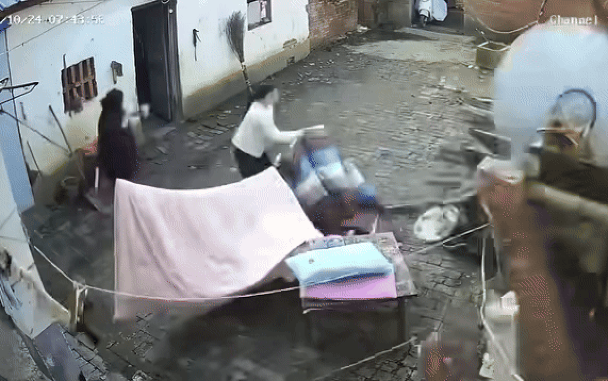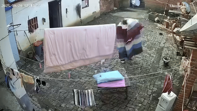 May mắn, sự việc này không có ai bị thương. Tuy nhiên, tình huống phơi chăn làm sập nhà, quả thực rất khó tin nếu không có camera an ninh ghi lại.