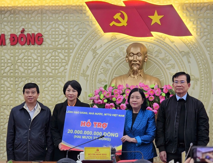 Bà Bùi Thị Minh Hoài thay mặt lãnh đạo Đảng, Nhà nước trao hỗ trợ Lâm Đồng 20 tỉ đồng để khắc phục hậu quả thiên tai, lũ lụt