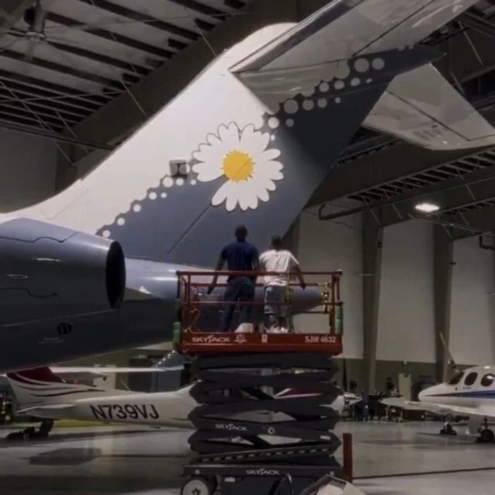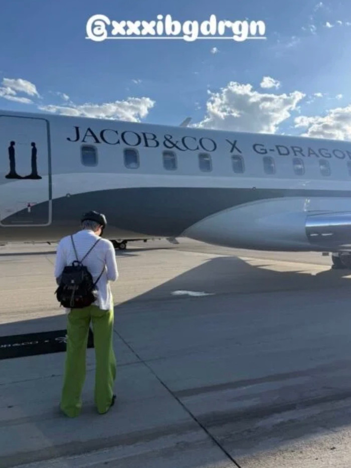 Chiếc máy bay mang dấu ấn đặc trưng của G-Dragon không chỉ đơn thuần là phương tiện di chuyển, mà còn được xem như một “tuyên ngôn phong cách” của anh. Trên thân máy bay nổi bật logo Peaceminusone, thương hiệu thời trang do chính G-Dragon sáng lập, cùng chữ ký cá nhân quen thuộc mà người hâm mộ dễ dàng nhận ra. Bên cạnh đó, logo của Jacob & Co, thương hiệu trang sức cao cấp mà anh đang hợp tác, cũng xuất hiện song song, thể hiện mối liên kết giữa âm nhạc, thời trang và đẳng cấp thương hiệu mà anh đại diện.
