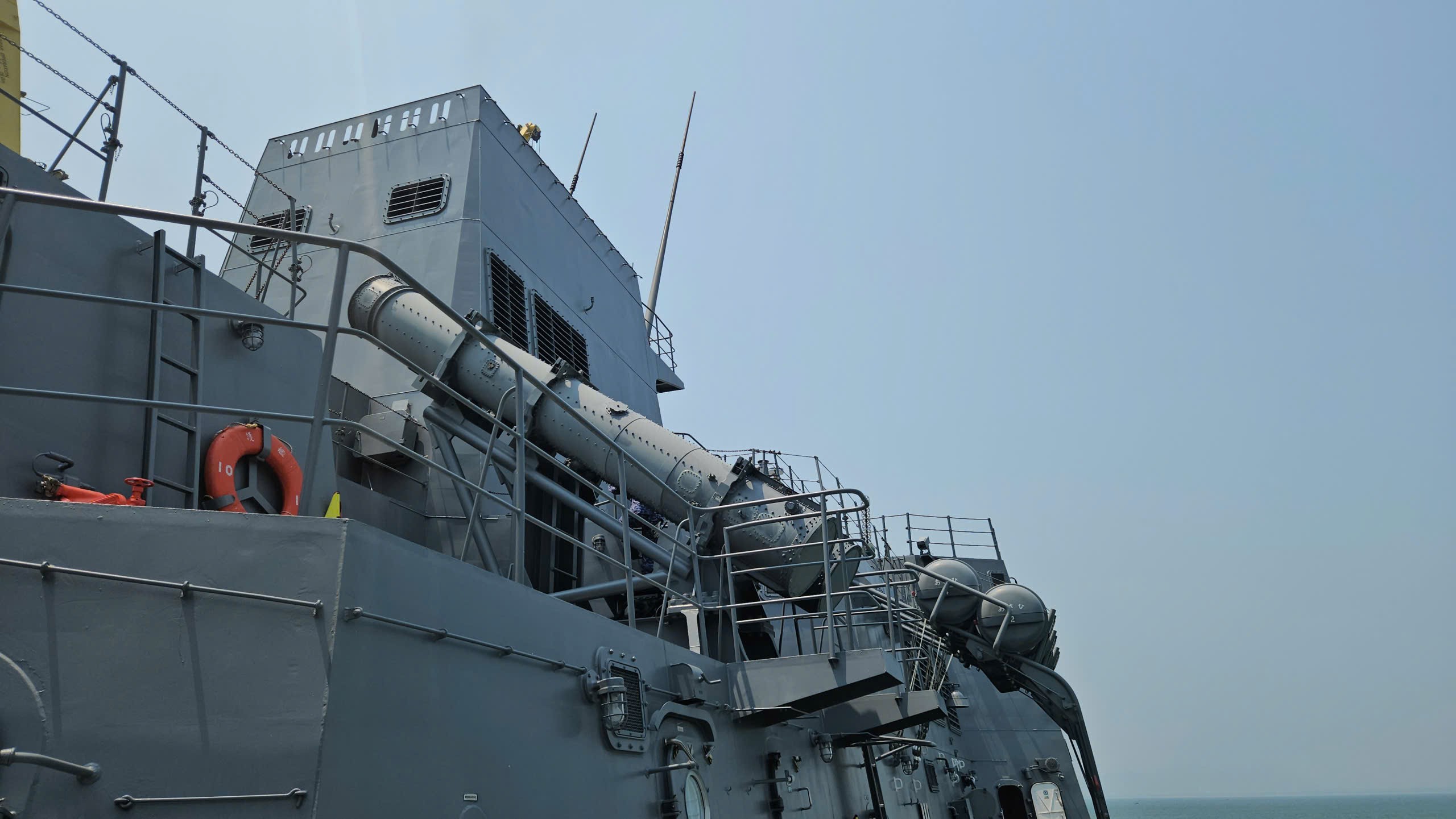 Trên tàu còn có 32 ống phóng tên lửa thẳng đứng Mk 41, tám tên lửa hành trình chống hạm Type 90, hai hệ thống phòng thủ tầm cực gần Phalanx CIWS 20mm, hai cụm ba ống phóng ngư lôi 324mm HOS-303. Ảnh: TẤN VIỆT