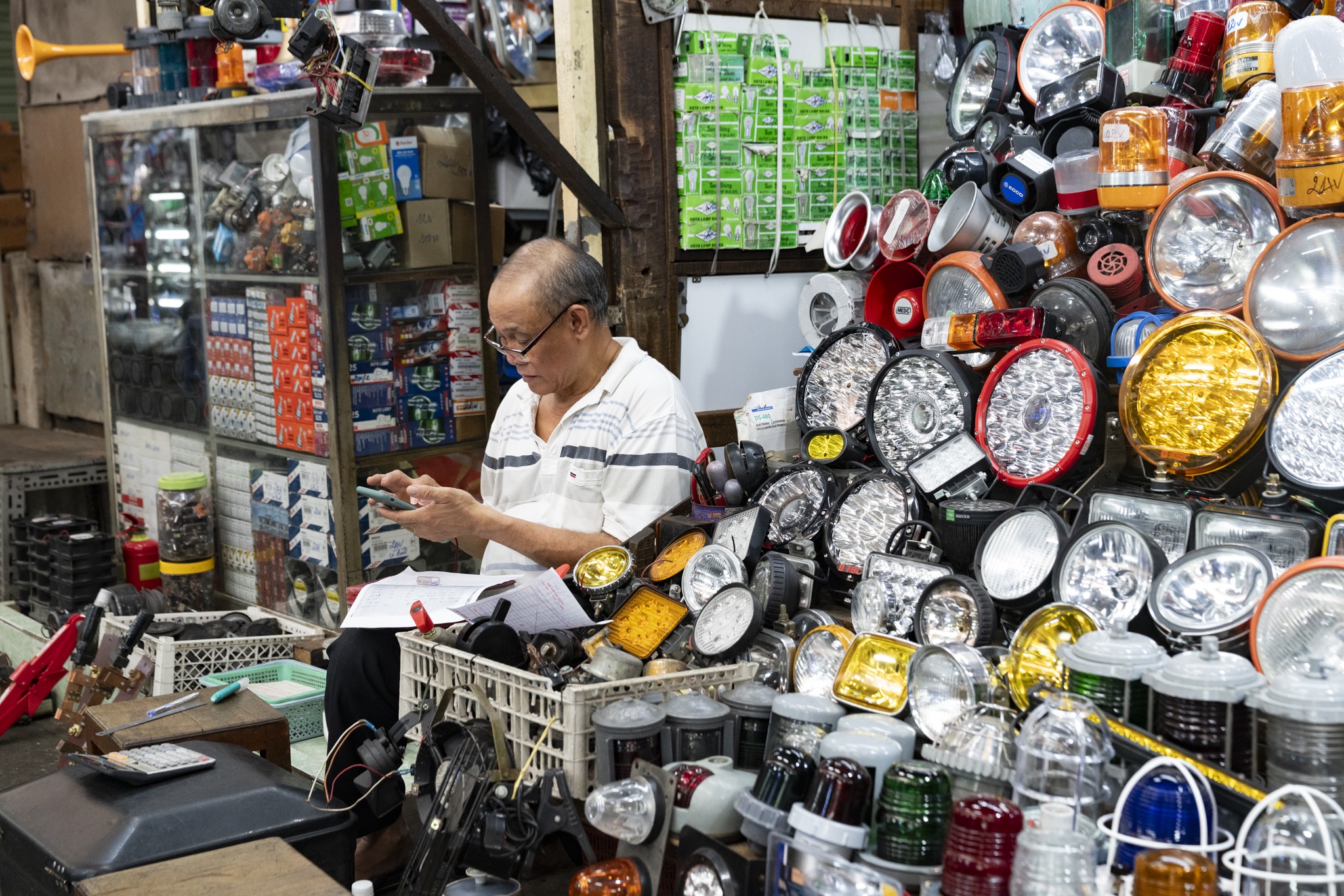 Cách đó không xa là chợ Dân Sinh (đường Nguyễn Công Trứ) - điểm dừng thú vị cho ai thích sự lộn xộn đầy thú vị. Giữa những lối đi hẹp, các gian hàng chen chúc bày bán đủ loại phụ tùng, đèn công suất lớn, bu lông, ốc vít, đồ lao động, thậm chí cả những bộ áo dài may sẵn.