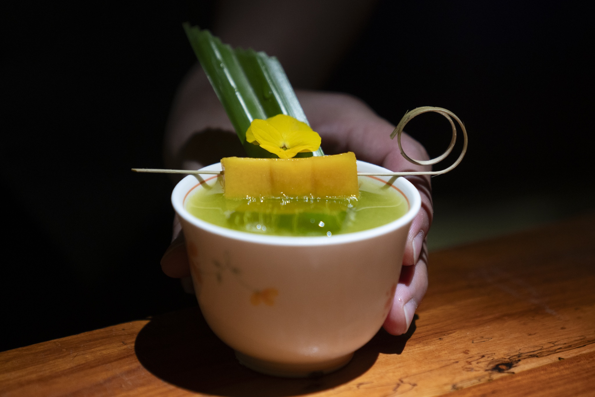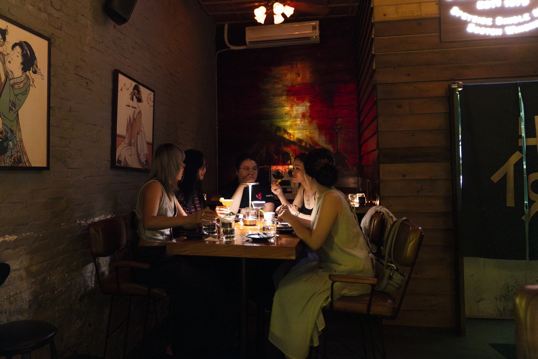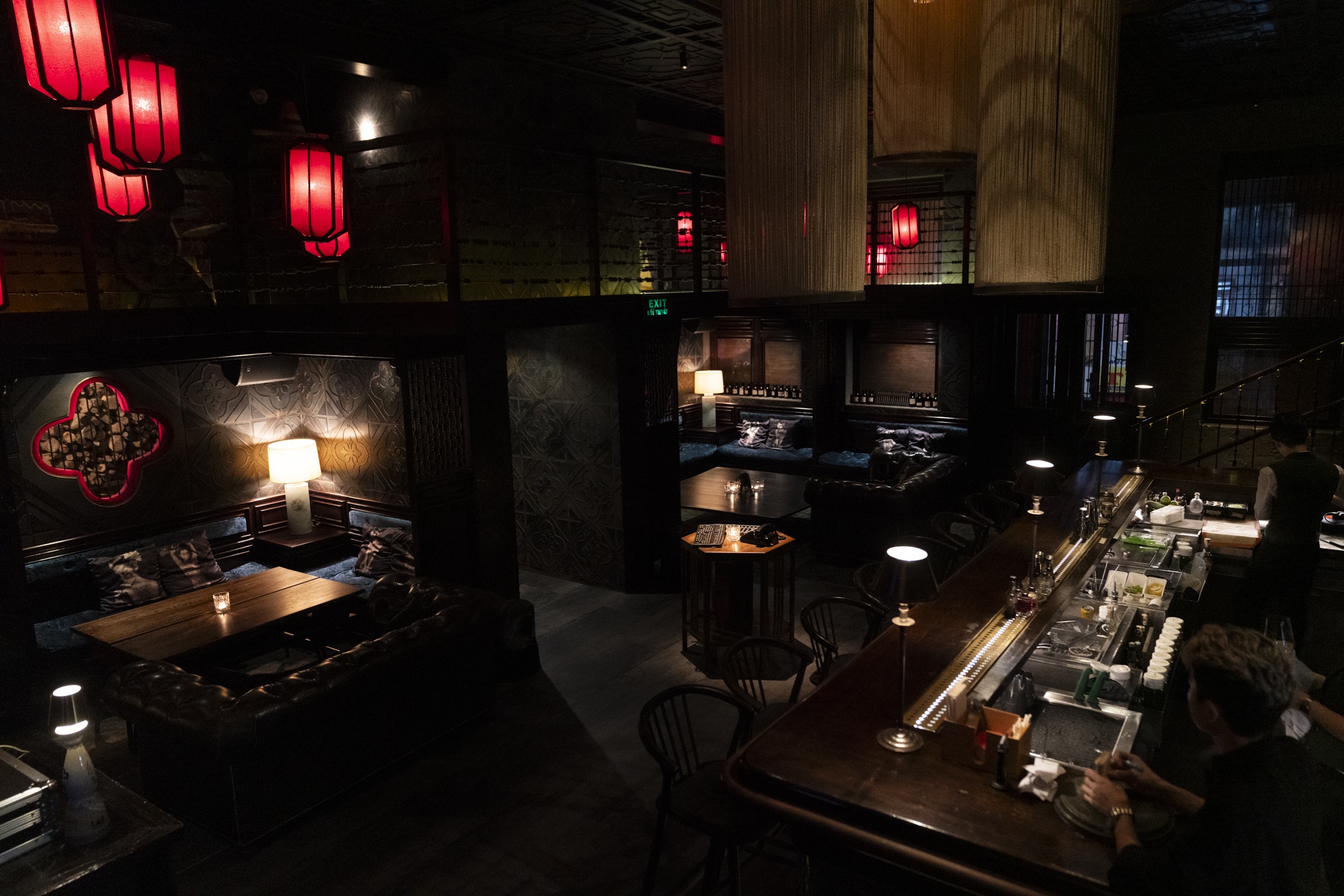Không gian được thiết kế ấm cúng, huyền bí với đèn lồng đỏ, bàn tính cổ và những dải lụa mềm. Mỗi ly cocktail ở đây như một chương truyện, dẫn dắt thực khách đi qua những gam màu, ký ức và cảm xúc đan xen.