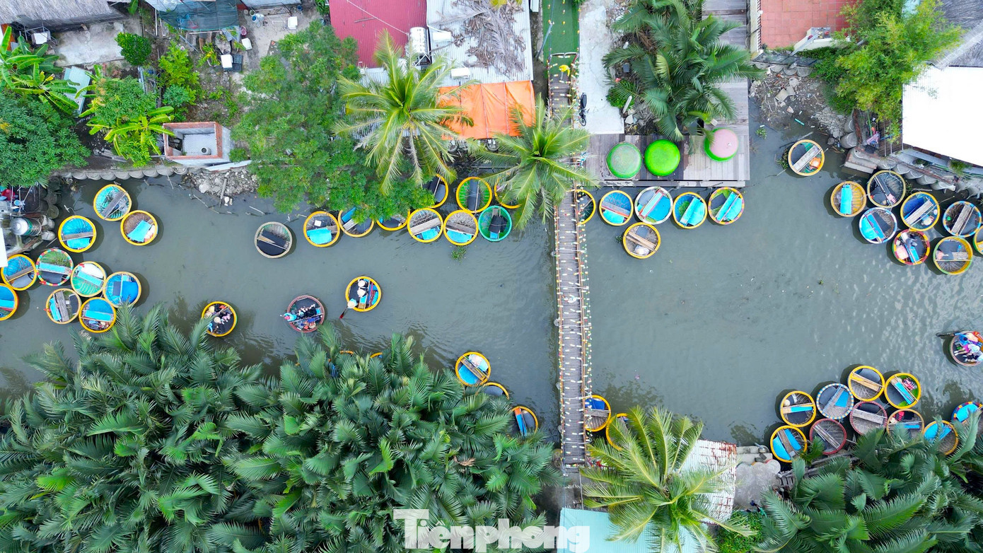 Du khách đến đây thích thú khám phá Cẩm Thanh trên chiếc thuyền thúng lướt nhẹ qua rừng dừa Bảy Mẫu và chứng kiến những người lái đò địa phương quăng chài là trải nghiệm khó quên.