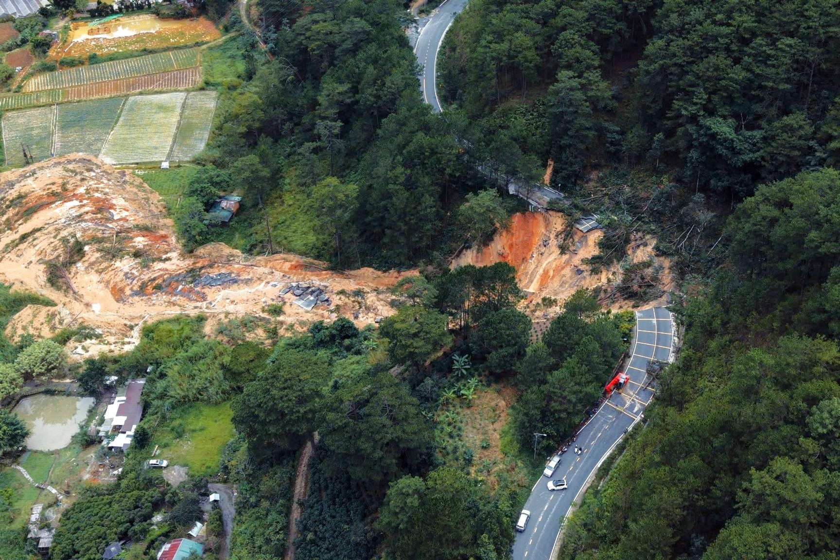 Đèo Mimosa bị chia đôi sau sạt lở ngày 17/11. Ảnh: Minh Hà/Đà Lạt Chạm.