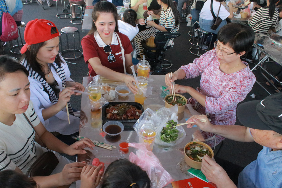 Đây là điểm hẹn cho du khách khi ghé thăm hội chợ buổi trưa và chiều tối, mang đến các món ăn địa phương, sản vật đặc sắc của các vùng miền, các khu vực văn hóa. (Ảnh: Minh Anh/Vietnam+)