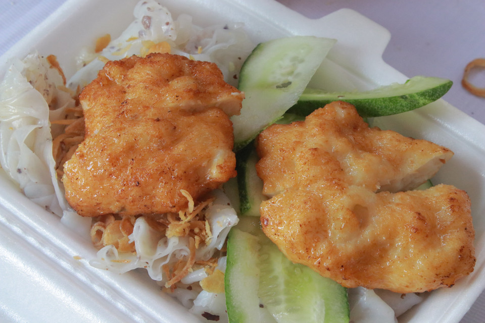 Bánh cuốn ăn kèm chả mực - đặc sản Quảng Ninh. (Ảnh: Minh Anh/Vietnam+)
