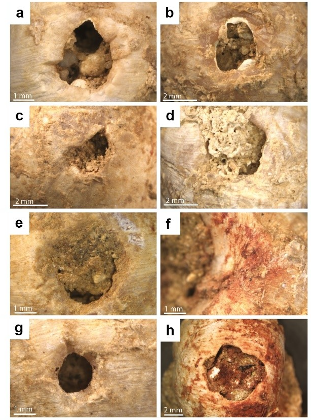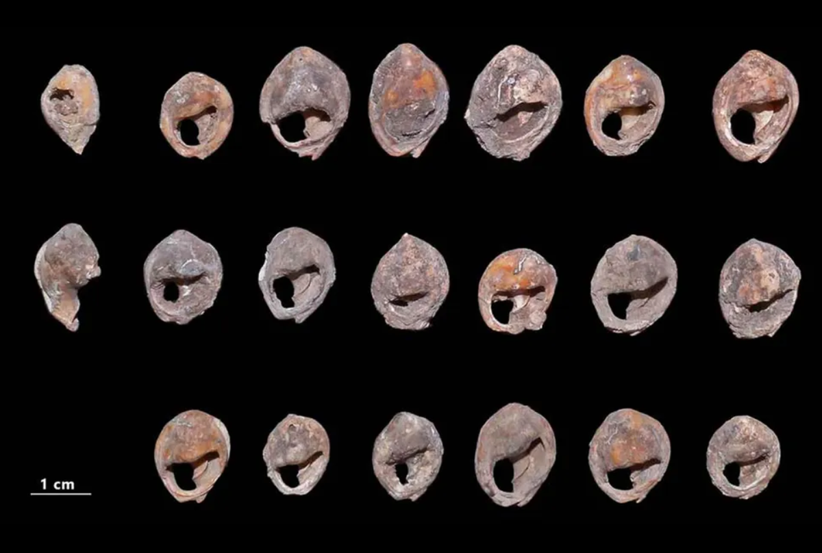 Tại đây, các chuyên gia đã phát hiện hàng chục vỏ sò Littorina obtusata đục lỗ, một số chưa được chế tác và một số khác cho thấy dấu vết của sắc tố và vết thủng. Việc không có dấu vết mài mòn trên một số lỗ thủng, cùng với sự hiện diện của các vỏ sò chưa được đục lỗ, cho thấy đây không chỉ đơn thuần là một bộ sưu tập đồ trang sức, mà đúng hơn là một xưởng chế tác trang sức vỏ sò thực sự. Ảnh: @Đại học Toulouse 2.
