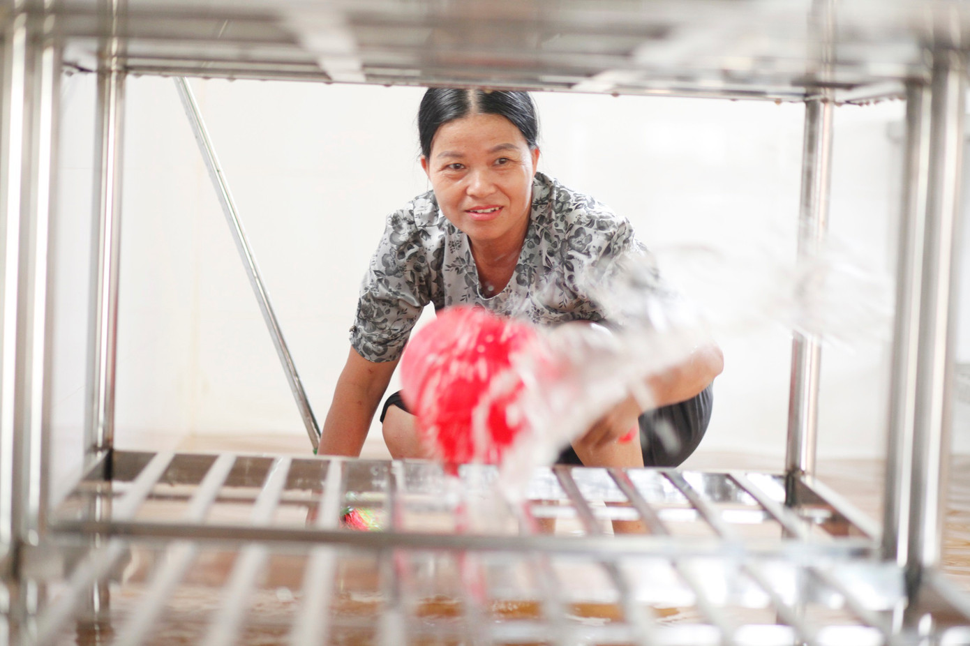 Cô giáo lau chùi sạch sẽ để đón các em đến trường. Ảnh: Nguyễn Thắng