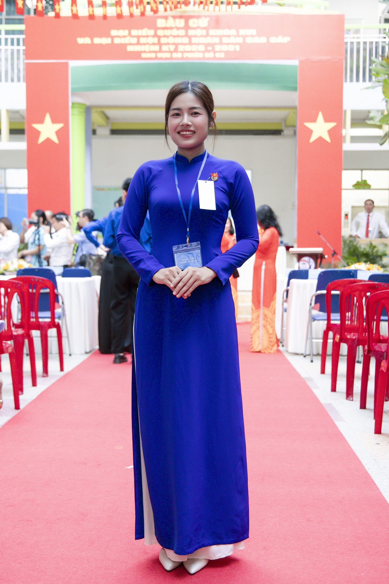 Trong số những tình nguyện viên tiêu biểu tại phường Xuân Hòa, Đào Ngọc Yến Nhi (sinh năm 2000), hiện là giáo viên trường Mầm non Hoa Mai, gây ấn tượng bởi sự tận tụy và nụ cười rạng rỡ. Dù công việc giảng dạy bận rộn, Nhi vẫn quyết định đăng ký tham gia hỗ trợ vòng ngoài cho kỳ bầu cử lần này. "Đây là sự kiện 5 năm mới có một lần, nên khi thấy thông báo tuyển tình nguyện viên, mình đăng ký ngay mà không ngần ngại", Yến Nhi chia sẻ. Bắt đầu ngày làm việc từ 6 giờ sáng, công việc của Nhi chủ yếu là hướng dẫn cử tri, hỗ trợ sắp xếp khu vực chờ và xử lý các tình huống phát sinh.