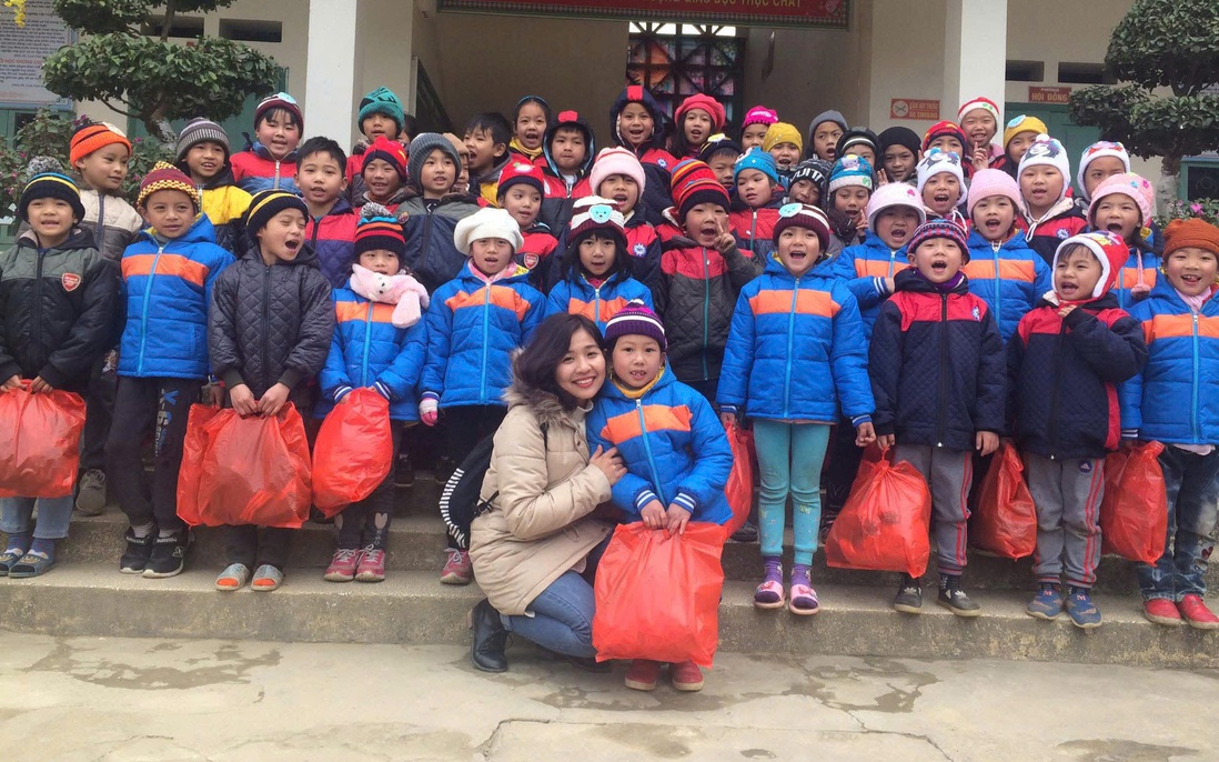 Cô giáo Nguyễn Thị Khánh Huyền, trong một lần từ thiện ở điểm trường vùng cao
