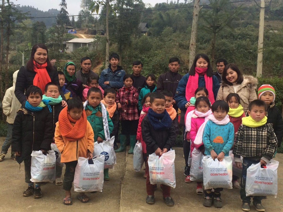 Cô Huyền và các đồng nghiệp cùng học sinh trong một chuyến thiện nguyện