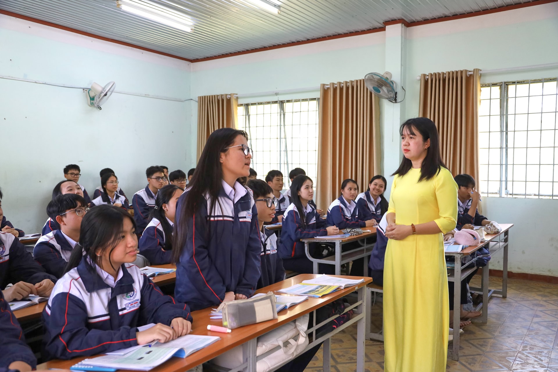Và đứng phía trên bục giảng, cô giáo Nga, “đạo diễn” của tiết học, luôn dõi theo từng phản ứng của học sinh, điều chỉnh nhịp độ bài giảng sao cho phù hợp.
