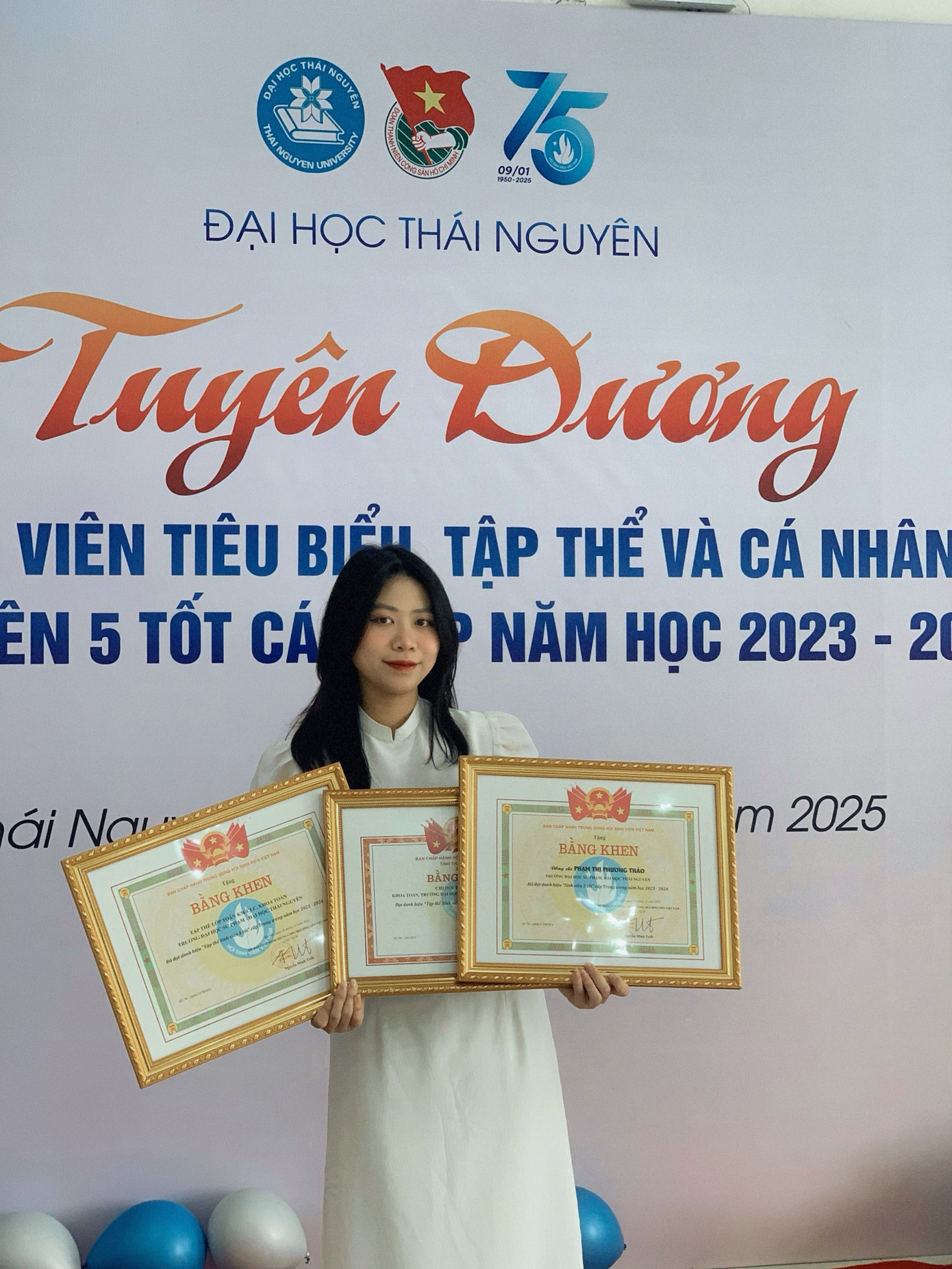 - Bằng khen đạt danh hiệu “Sinh viên 5 tốt” cấp tỉnh Thái Nguyên năm học 2023 - 2024”.