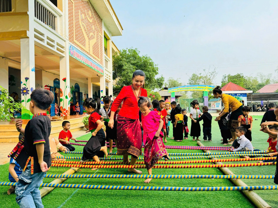 Nhưng hơn cả, điều khiến cô Trần Thị Anh gắn bó và tự hào với công việc của mình chính là cơ hội được góp phần gìn giữ bản sắc văn hóa dân tộc ngay trong lớp học mầm non. Ở xã Núa Ngam, phần lớn trẻ em là con em các dân tộc Thái, Khơ Mú, H’Mông…