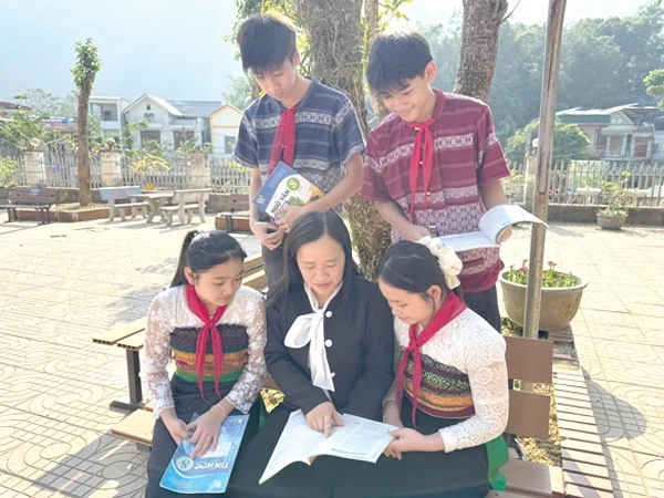 Cô giáo Trịnh Thị Hương hướng dẫn môn Ngữ văn cho đội tuyển học sinh giỏi Trường PTDTNT - THCS Quan Hóa.