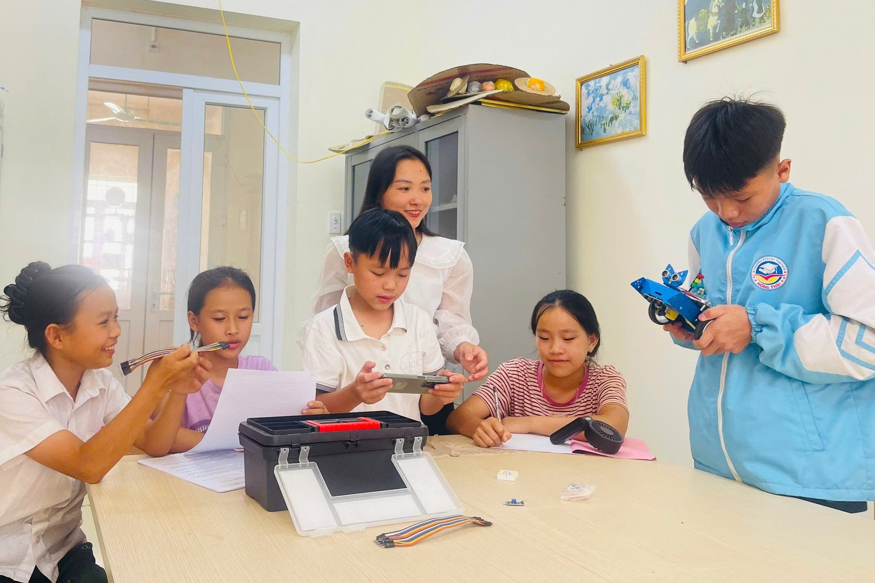 Cô giáo Kim Ngân từng hướng dẫn học sinh tham gia thi Khoa học kỹ thuật đạt 5 giải cấp huyện. Ảnh: NVCC